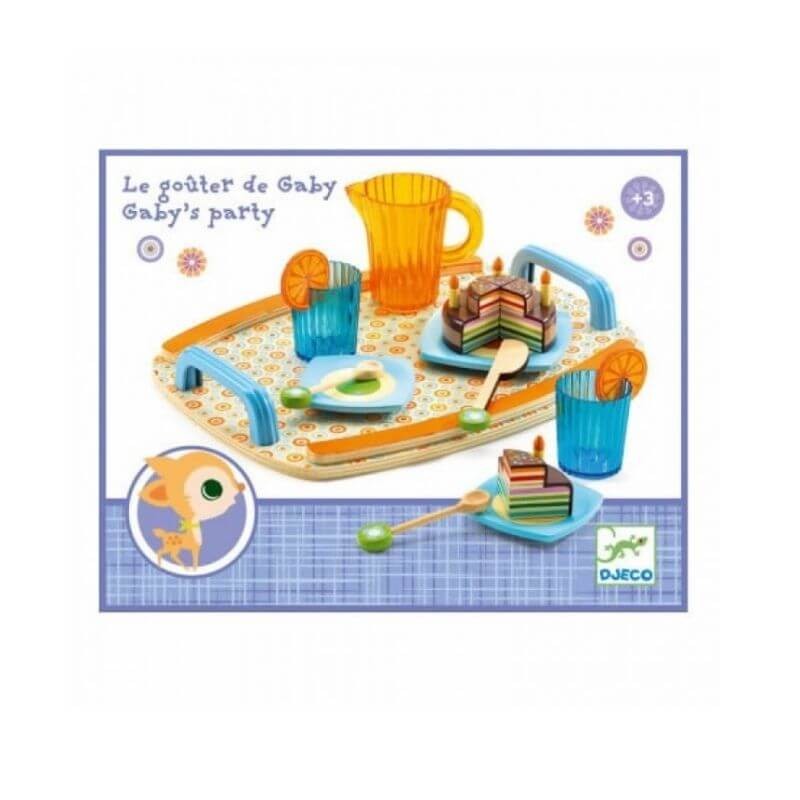 Contenido: bandeja con asas, set de platos y cucharas, jarra, vasos para limonada, plato con tarta.