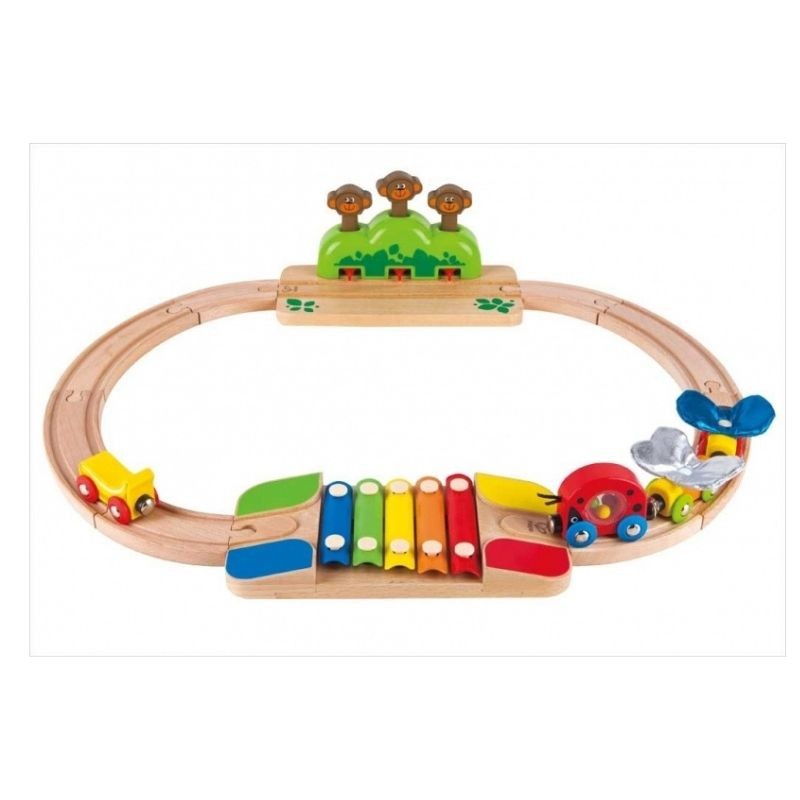 Contenido: 17 piezas incluyendo vías, unos vagones coloridos, un xilófono, monos…