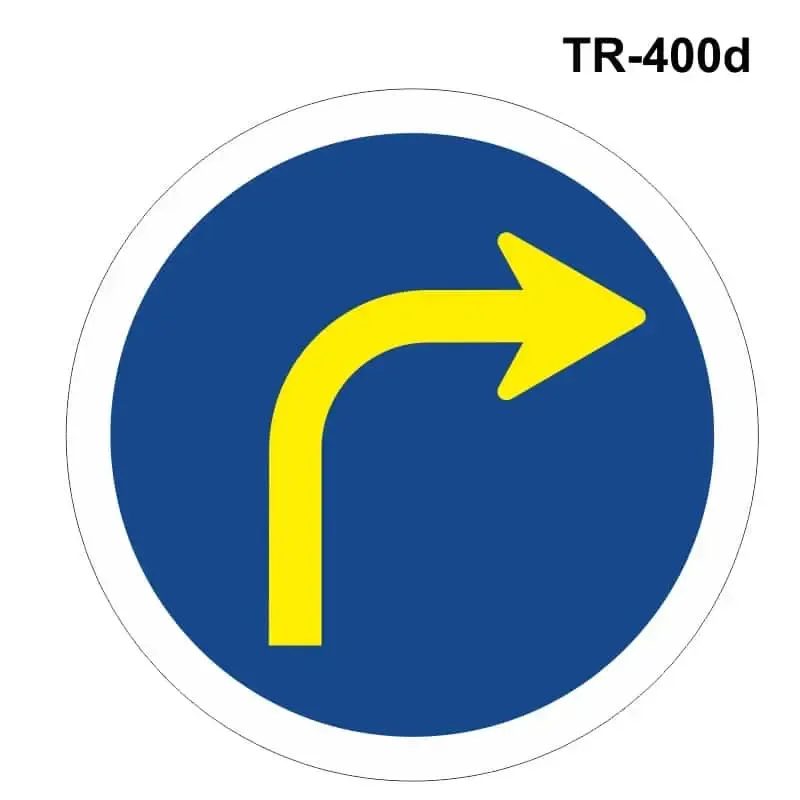 Esta señal obliga a los conductores a seguir la dirección y sentido que nos indica la señal. En este caso nos indica el giro hacia la derecha.
