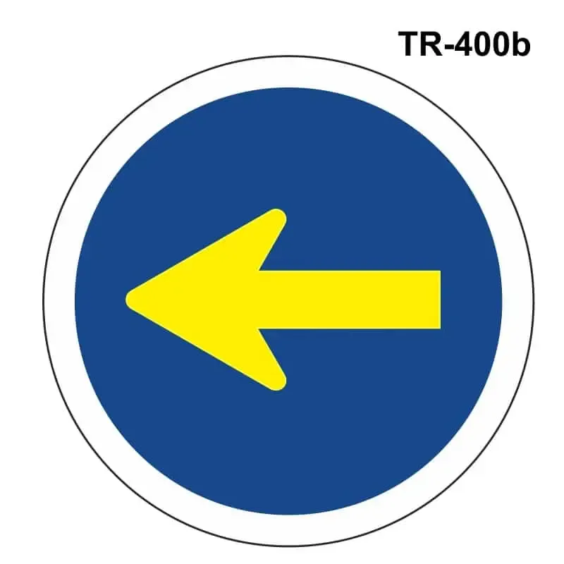 Señales de obligación tráfico de sentido a la izquierda para obras TR-400b homologadas MOPU con diferentes niveles de reflectante y señales económicas.