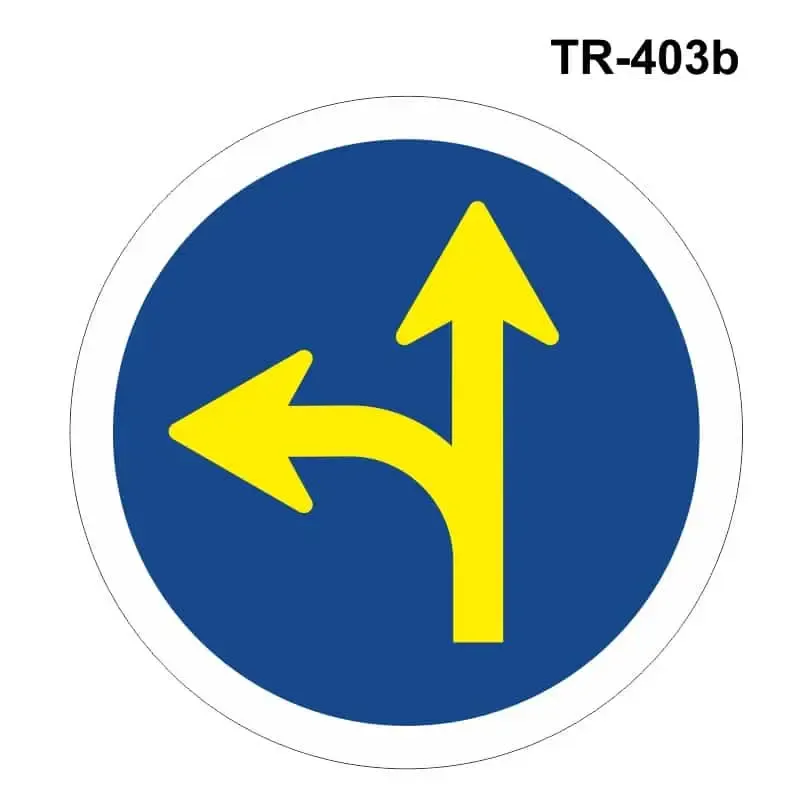Esta señal informa a los conductores de las dos únicas direcciones que los vehículos pueden tomar. En este caso hacia la izquierda y en sentido recto.