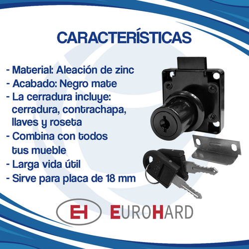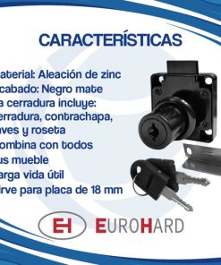 – Esta cerradura, puede ser utilizada en cajones de escritorio y muebles con puertas de madera abatibles
