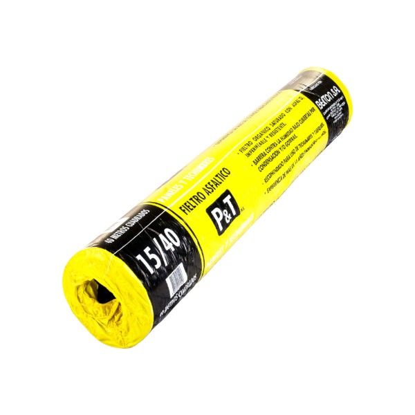 Papel reciclado saturado en asfalto modificado, que se utiliza como segunda barrera de humedad, en construcción de cubiertas y muros. Impermeable al agua, polvo y viento; pero permeable al vapor de agua, evitando asi, la condención al interior de la vivienda.