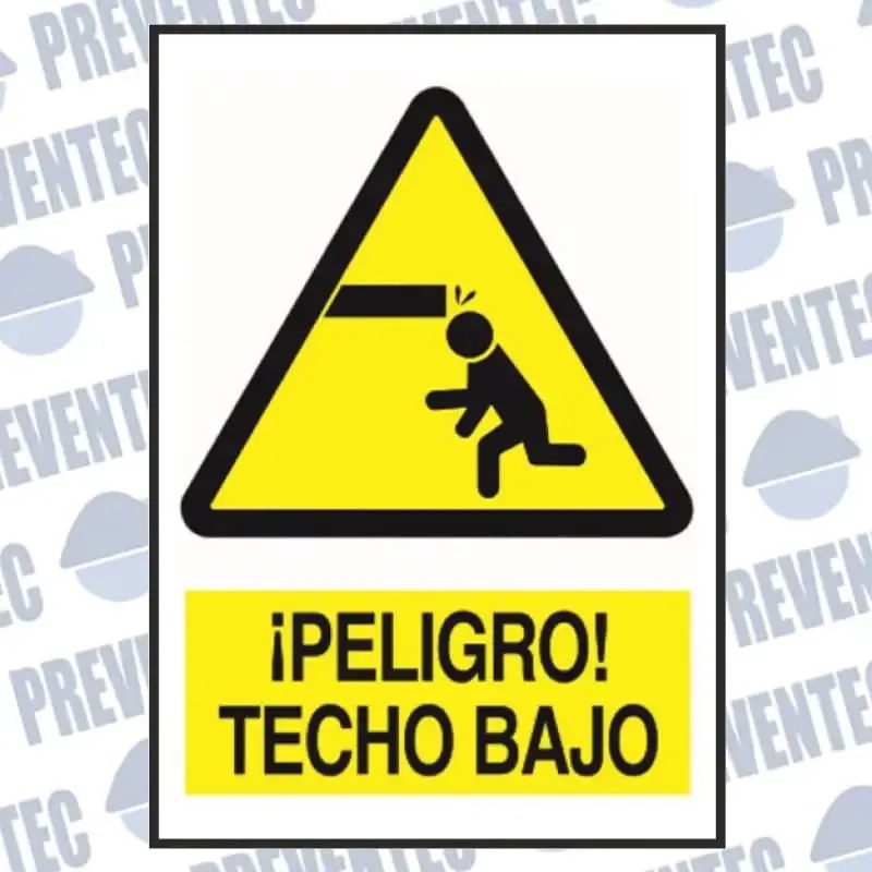 Esta señal nos advierte de la existencia de estructuras en el techo a una altura que puede provocar golpes en la cabeza.