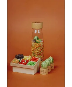 En la selección de Petit Boum que hemos hecho para Kubo encontrarás sus famosísimas botellas sensoriales, pero también los nuevos saquitos de pelotas sensoriales, los sacos táctiles de inspiración montessori y la botella de experimentación para peques de a partir de 3 añitos.
