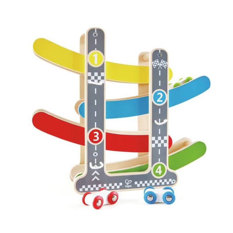 La Pista de Carreras es una pista de madera que viene con tres coches veloces para que hagas carreras.
