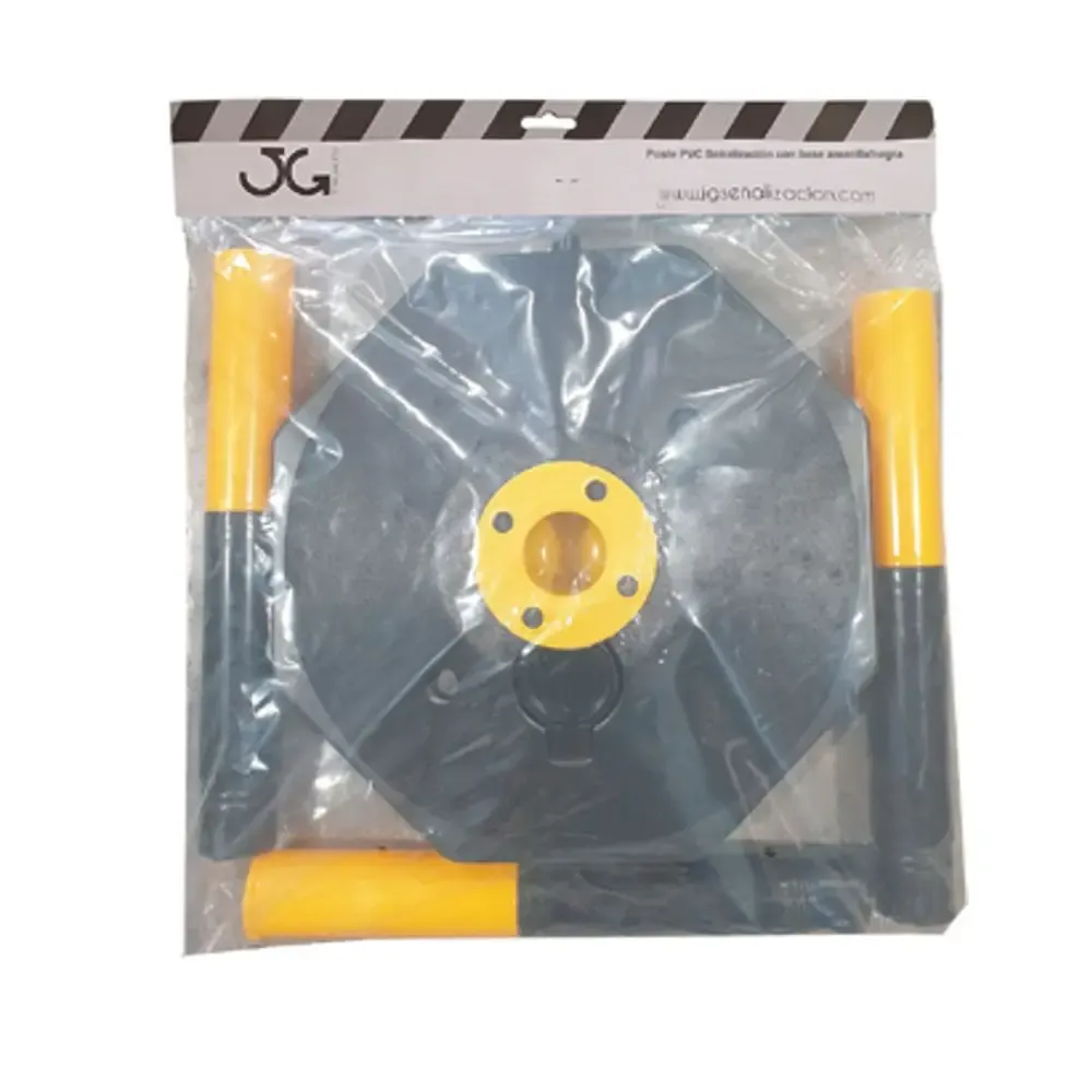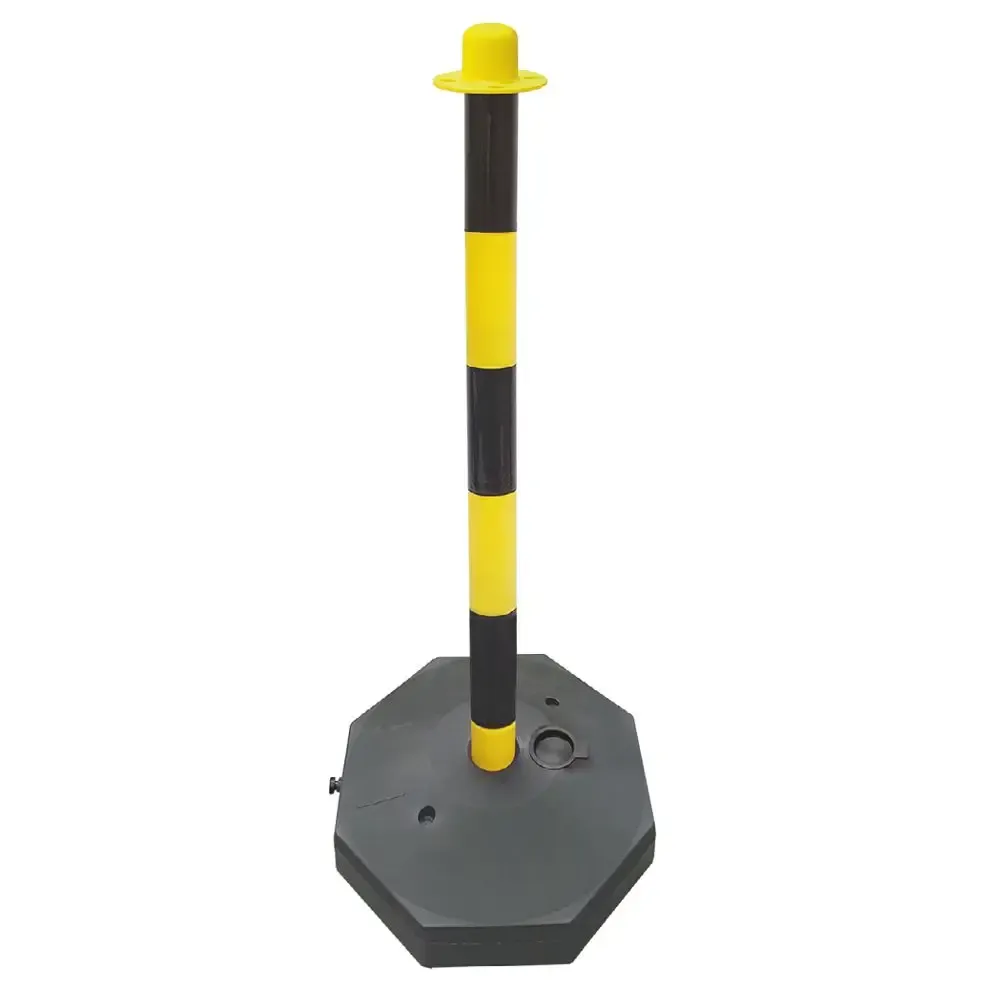 Este poste de señalización o balizamiento está fabricados en PVC y es ideal para el uso con cadena de 6 o 8 mm . Además, cuentan con una base rellenable de agua o arena que proporciona un mayor peso y estabilidad al poste.