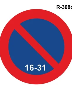 Señal tráfico prohibido aparcar la segunda quincena modelo R-308d homologadas MOPU y económicas de prohibición o restricción.