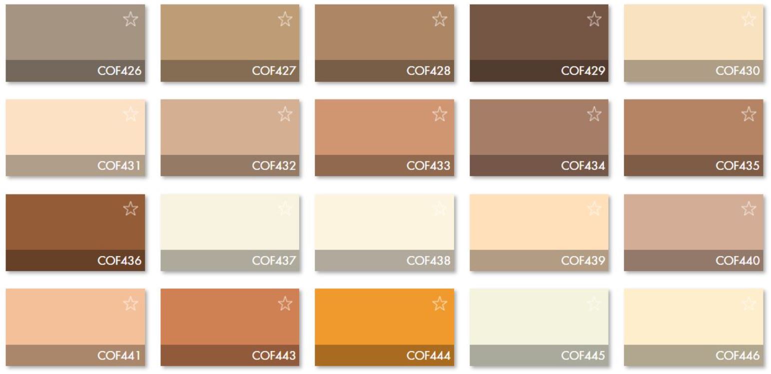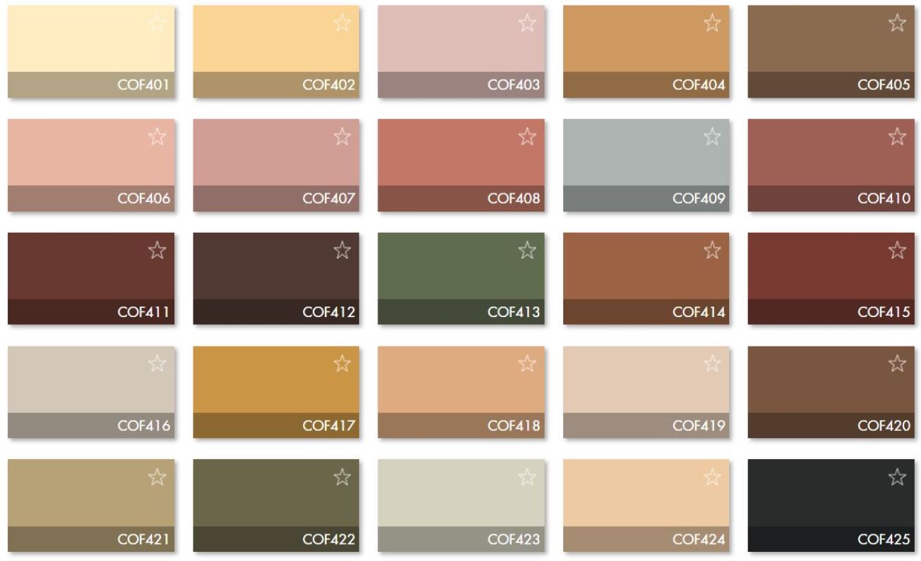 Posibilidad de crear cualquier acabado de la Carta de colores COF (ver imágenes asociadas). El precio final del producto dependerá en este caso del tamaño y color concreto escogido. Pónganse en contacto con nosotros a través de nuestros canales de contacto (formulario, correo electrónico, teléfono fijo o móvil) para más información.