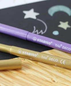 Los rotuladores metálicos STABILO Trio DECO son perfectos para dar a los niños y a sus obras de arte un brillo extra. Los adultos estarán felices de ver a sus hijos dibujar y decorar de varias maneras. Sus 8 colores brillantes atraen a los niños: ya sea en la escuela o en casa con amigos, sus creaciones tendrán un toque especial en un abrir y cerrar de ojos. Estos rotuladores ergonómicos se adaptan a sus pequeñas manos y la zona de agarre triangular enseña a usar la posición correcta del rotulador. La punta XL extra gruesa con un ancho de línea de 3 mm aplica tinta rápidamente y colorea en áreas grandes en poco tiempo sobre papel, cartón o madera. Además, puedes añadir un brillo muy especial a tus manualidades, como las tarjetas de Navidad y es ¡una fantástica idea de regalo también!