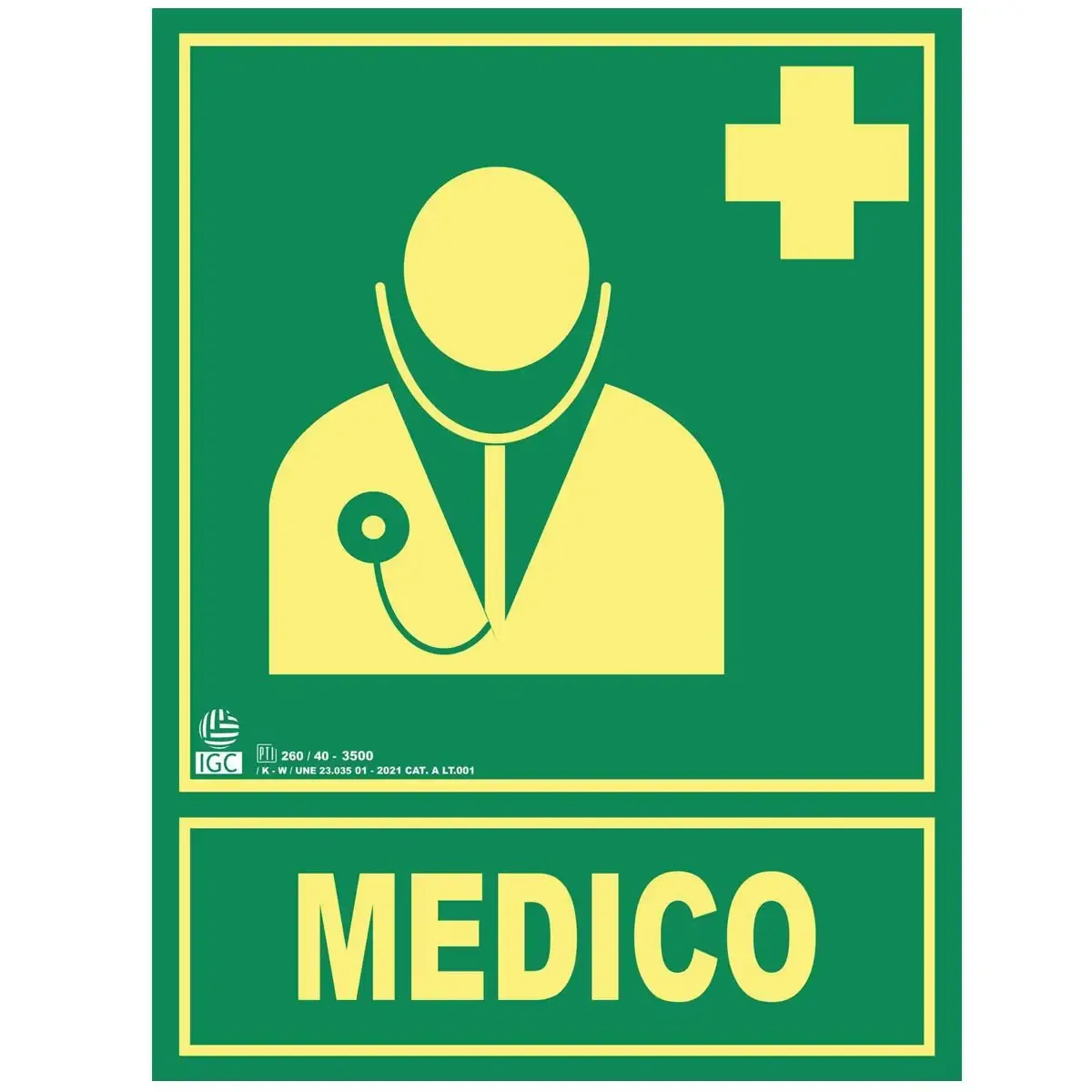 Señal de emergencia médico fabricada en material PVC con material fotoluminiscente de CLASE A Y CLASE B con tamaño de DIN A4 o A2