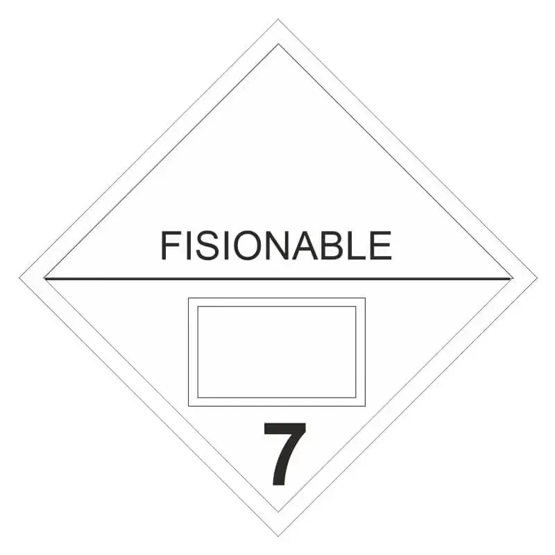 Pegatinas ADR clase 7 con dos tamaños diferentes y varios materiales como vinilo adhesivo, poliestireno o aluminio con el objetivo de informar a las personas del tipo de mercancía peligrosa que se está transportando.