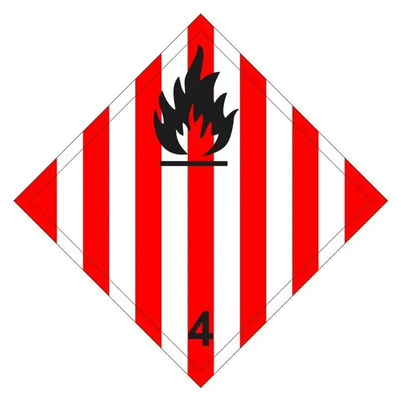 Etiqueta 4.1 ADR de clase 4 de materias sólidas inflamables, materias autorreactivas y materias explosivas desensibilizadas.