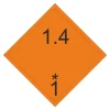 Señales o etiquetas ADR de materias y objetos explosivos con dos tamaños diferentes y varios materiales como vinilo adhesivo, poliestireno o aluminio con el objetivo de informar a las personas del tipo de mercancía peligrosa que se está transportando.
