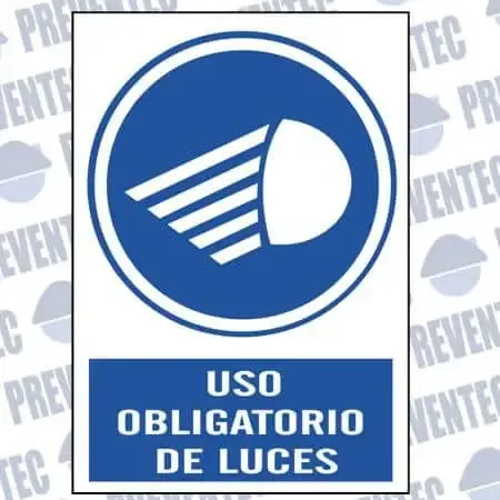 Señalamientos obligatorios de seguridad en la que nos indica la obligación de encender las luces de un vehículo o maquinaria.