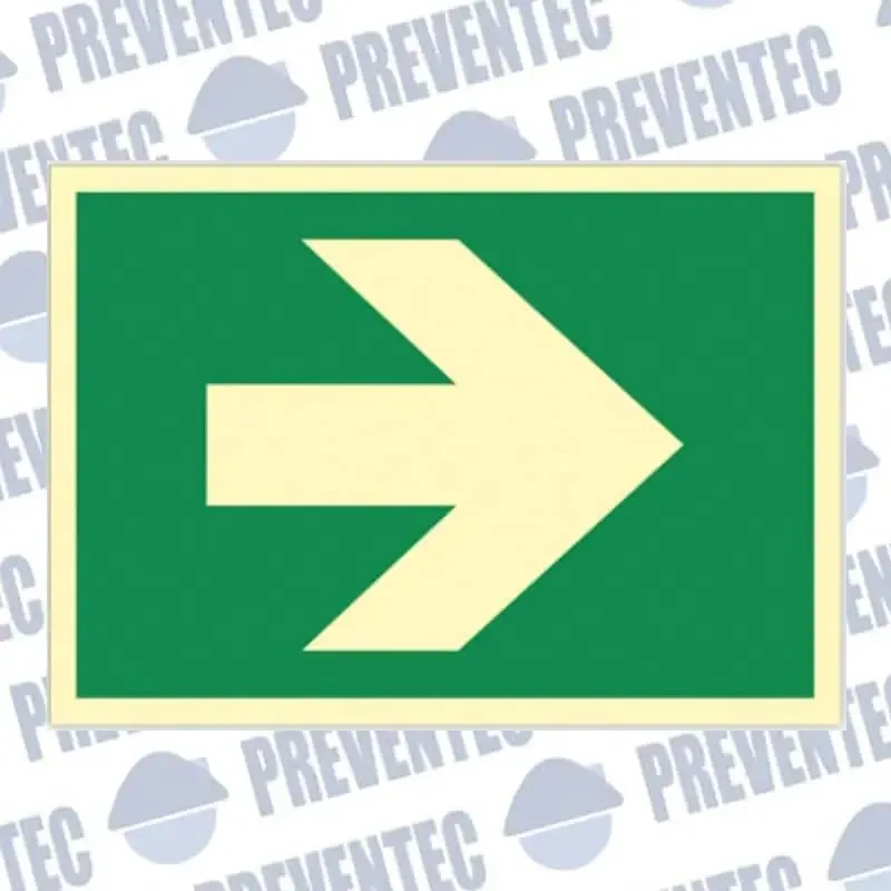 Señal de emergencia flecha fabricada en material PVC con material fotoluminiscente de CLASE B y en tamaño DIN A4