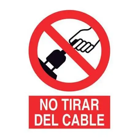Esta señal de seguridad prohíbe expresamente a todos los trabajadores no tirar del cable eléctrico en que está instalada la señal.