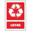 Cartel de material reciclado de chatarra para instalarse en contenedores, u otros espacios destinados a material para reciclar.