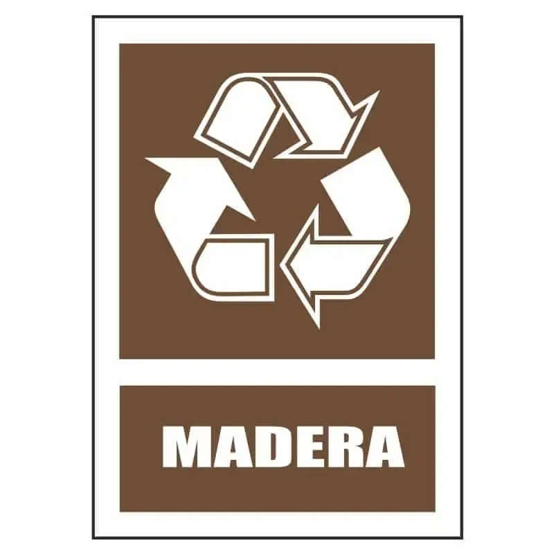 Carteles de reciclaje de madera para instalarse en contenedores, u otros espacios destinados a material para reciclar.