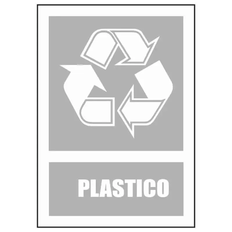 Cartel reciclaje plástico para instalarse en contenedores, basureros, papeleras u otros lugares destinados al reciclado.