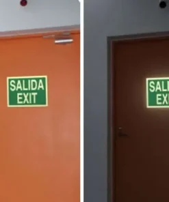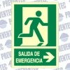 Señal salida de emergencia fabricada en material PVC con material fotoluminiscente de CLASE B y en tamaño DIN A4