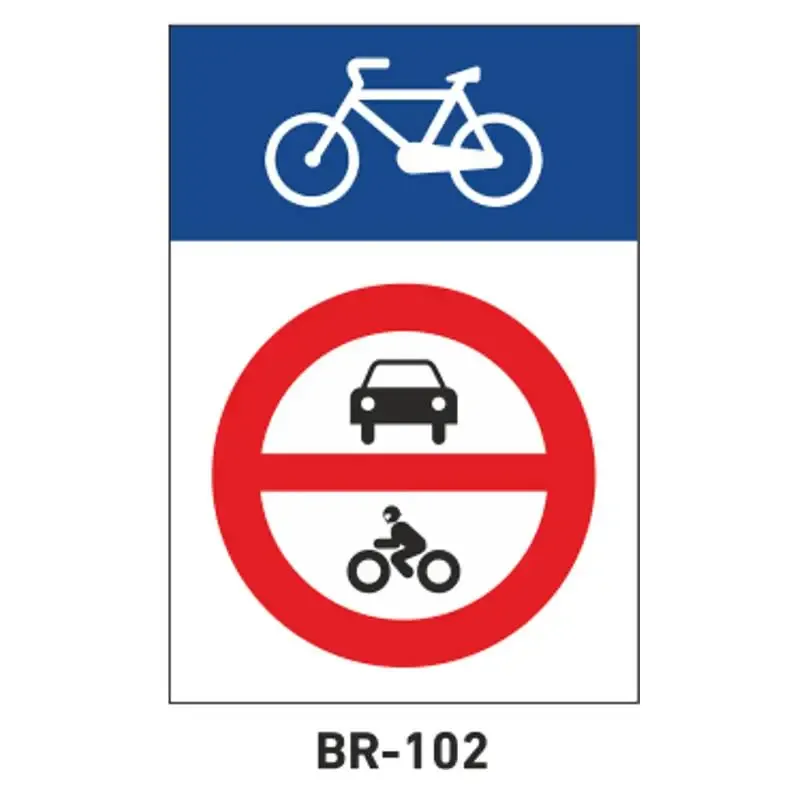 Señal para ciclo-ruta BR-102 de entrada prohibida a vehículos de motor con un diseño homologado y que indican las normas de tráfico que deben cumplir los ciclistas.