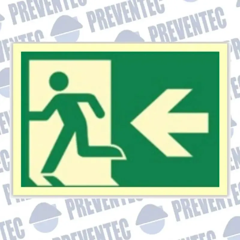 Esta señal nos informa que en caso de emergencia y tener que evacuar un local debemos cruzar una puerta que está a la izquierda.