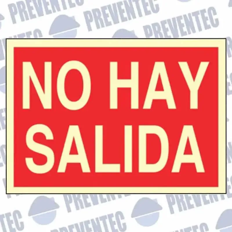 Esta señal de socorro sin pictograma, sólo con texto, nos informa de que el lugar en donde está la señal no tiene salida y no hay que tomarla en caso de incendio.
