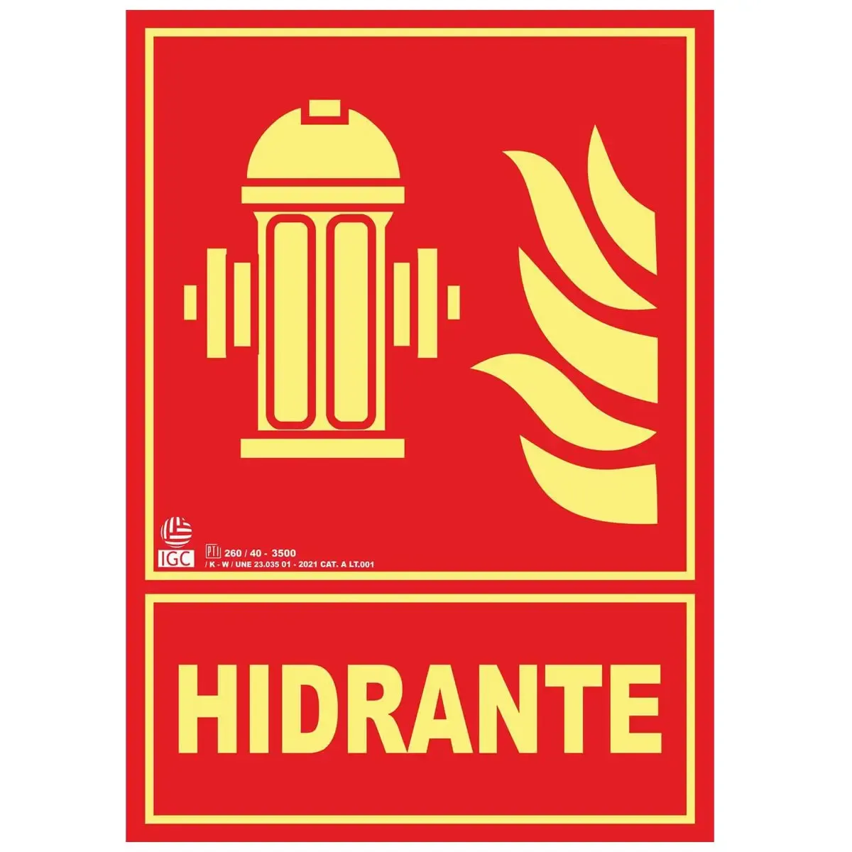 Señalización hidrante fabricada en material PVC con material fotoluminiscente de CLASE A y CLASE B con tamaño de DIN A4 o A2