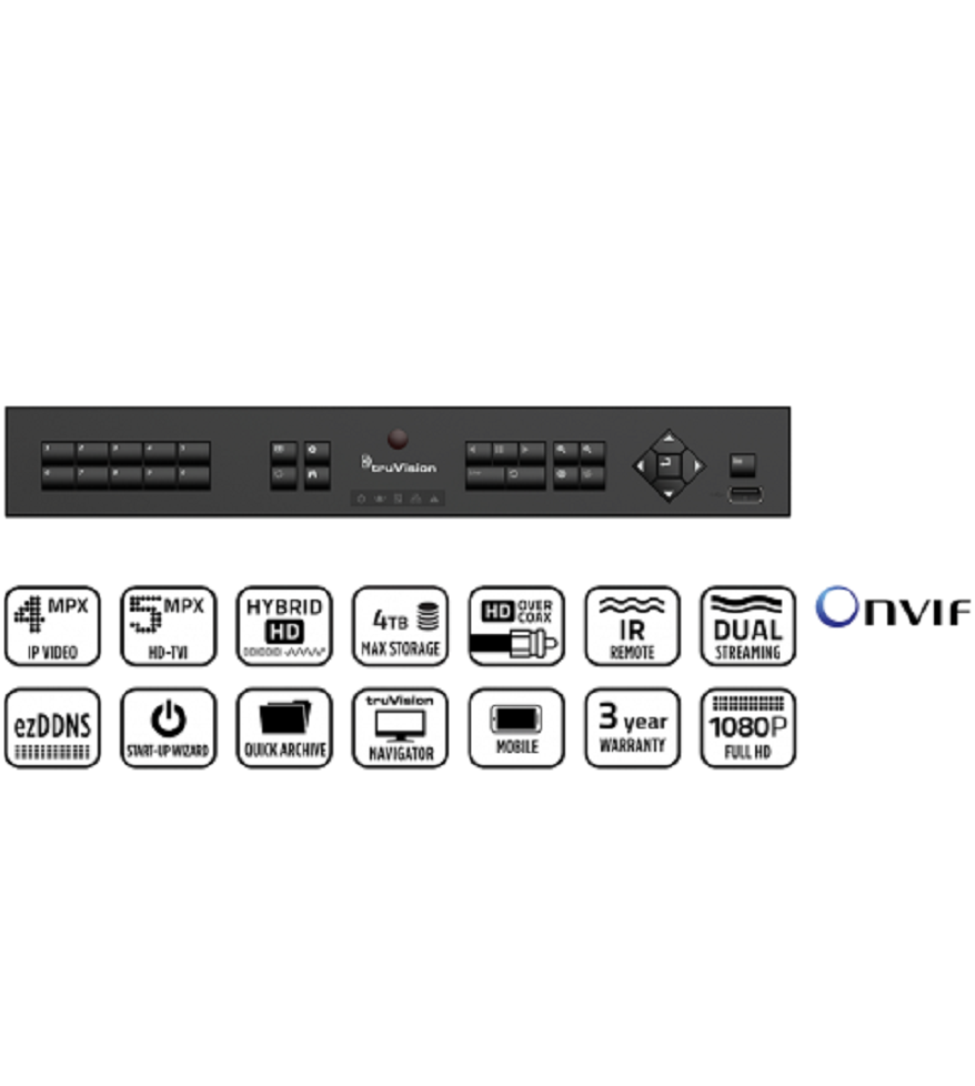 - Soporte de cámara de hasta 5 MPX HD-TVI (en un máximo de 1/4 de los canales)