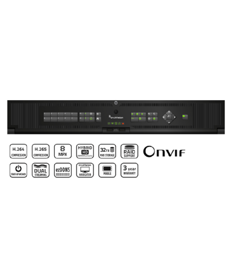- Compatibilidad con cámaras IP y HD-TVI de hasta 4K (8 MP). HD-CVI: hasta 4MP y HD-AHD: hasta 5MP.