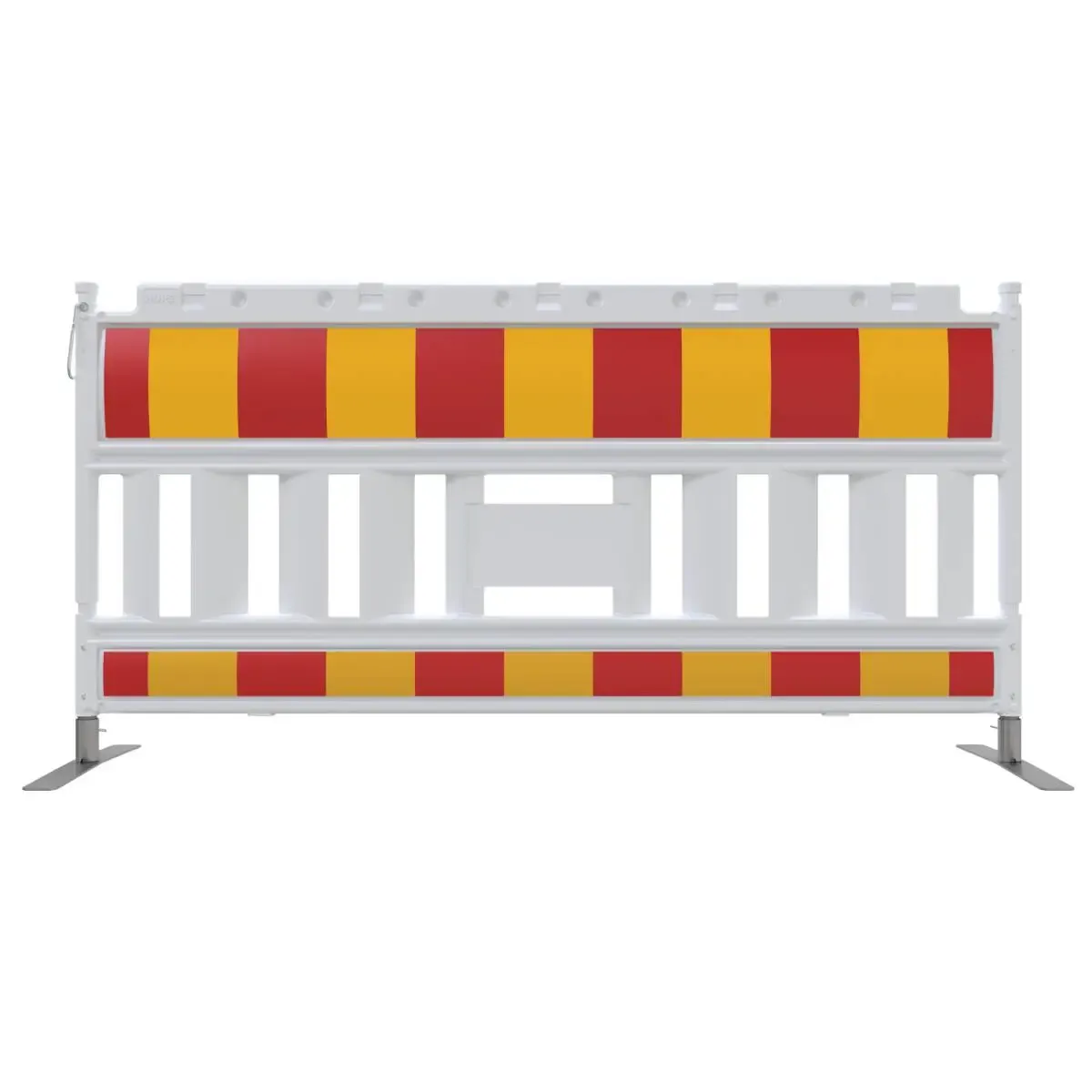 La valla de plástico Euro2 del fabricante Schake viene con bandas rojas y amarillas, colores que advierten a los conductores o peatones de un alto riesgo al que hay que estar atento.