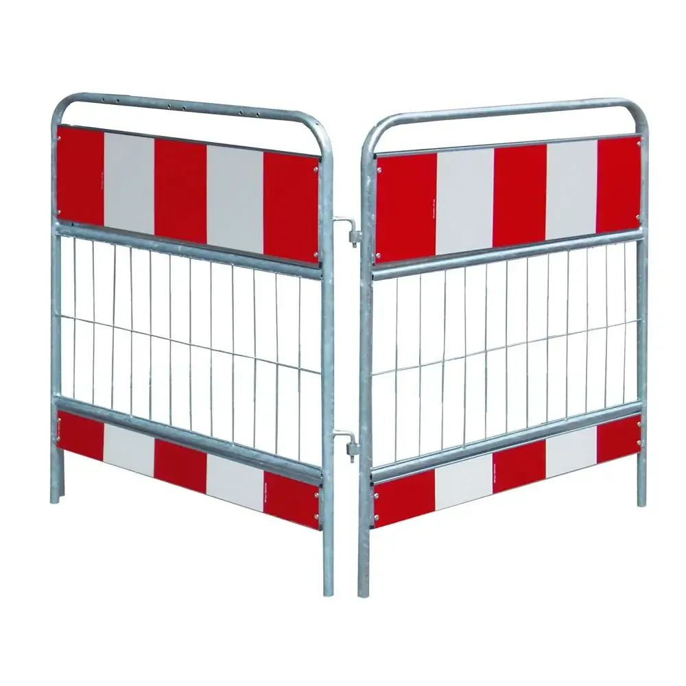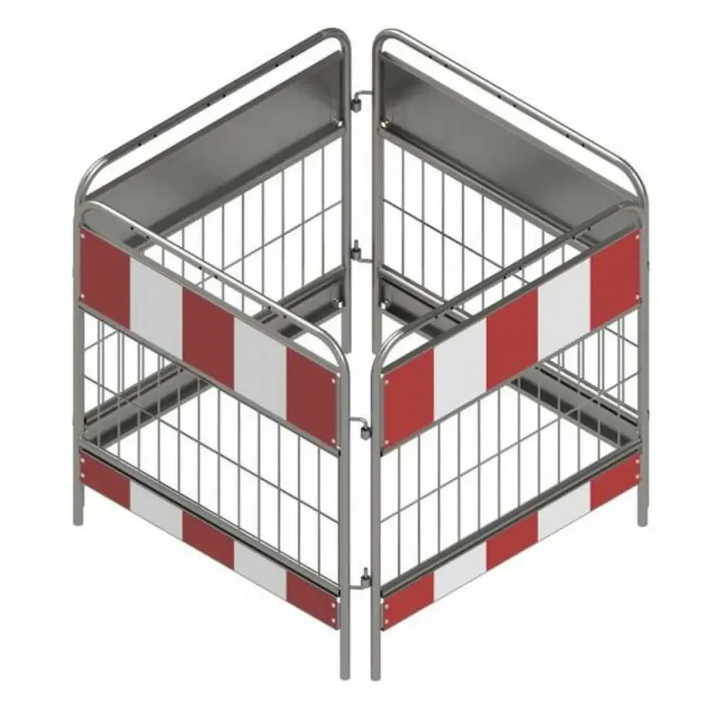 Valla en acero galvanizado tipo rejilla con forma rectangular, placas de señalización  y 3 medidas diferentes para asegurar zanjas, alcantarillas o zonas de obras.