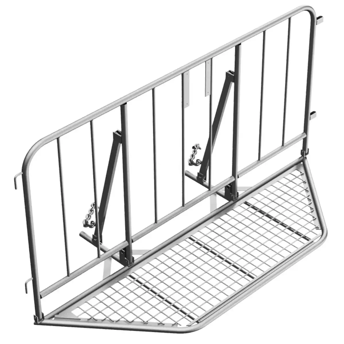 - Ganchos y estribos de conexión soldados en el lateral del marco que permiten conectar con otra valla.