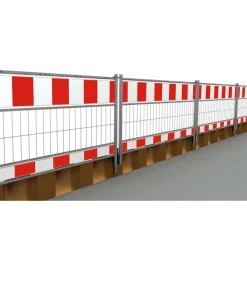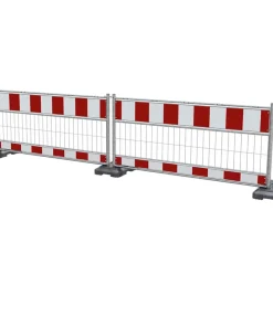 Las vallas metálicas con panel reflectante de la marca Schake es ideal para delimitar zonas de trabajo y garantizar la seguridad de los peatones o trabajadores en un lugar en obras.