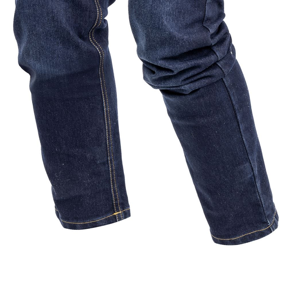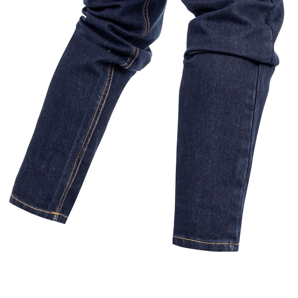 Vaquero de moto con de una sola capa. El tejido balistico va hilvanado con el vaquero.