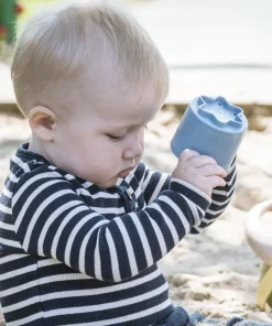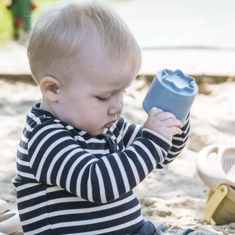 El set está formado por 7 cubos apilables fabricados con caña de azúcar. 90% de biobase, 100% reciclables y 100% sostenibles. Los cubos encajan entre sí para facilitar su almacenaje y transporte, algunos tienen perforaciones para jugar con el agua, y en su base tienen siluetas de diferentes figuras para contornear, repasar, modelar con arena… resultan perfectos para desarrollar la coordinación de forma natural, el pensamiento lógico y las habilidades manipulativas.