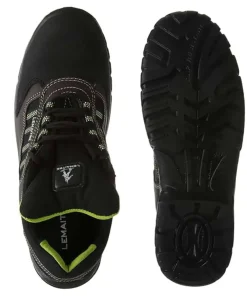 Zapatos de seguridad Lemaitre con estilo trekking fabricado en piel flor engrasada y reforzada en la puntera con «groove antiabrasión» para dar más durabilidad al zapato en una zona de mayor desgaste.