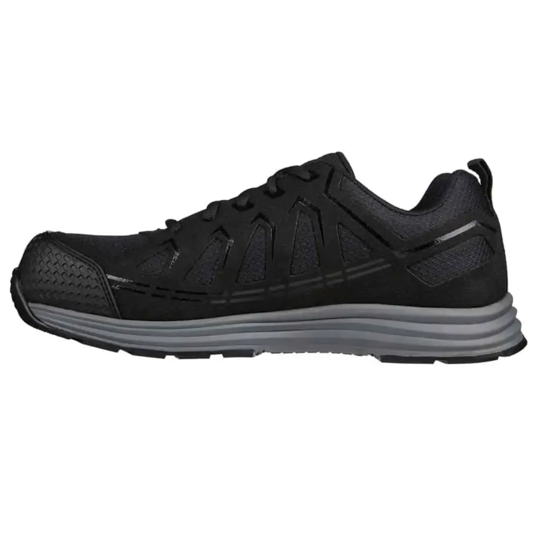 Zapato de seguridad Skechers repelente a líquidos con protección NO metálica en puntera y plantilla antiperforación de fibra de carbono.